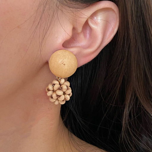 Art ball hand-woven wooden bead pinecone stud earrings