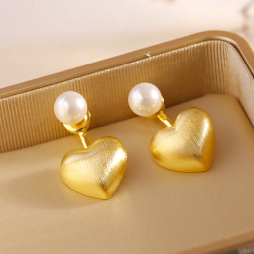 925 Silver Needle Freshwater Pearl Brushed Love Earrings