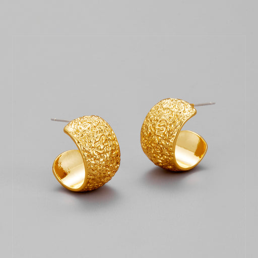 925 Silver Needle Gold C-pleated Textured Earrings