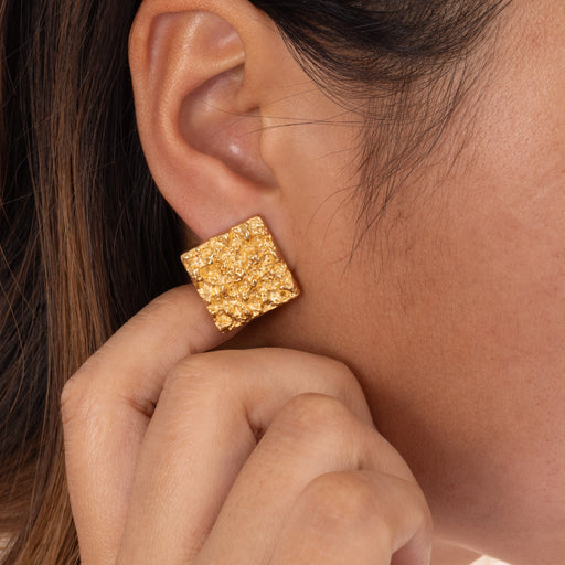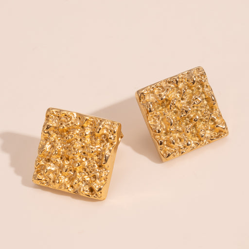 925 Silver Needle Square Gold Foil Textured Stud Earrings