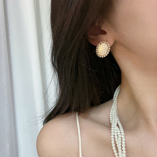 Stainless steel resin imitation pearl earrings