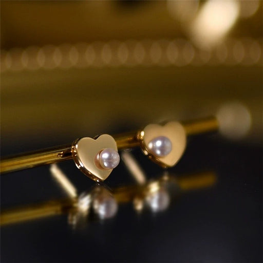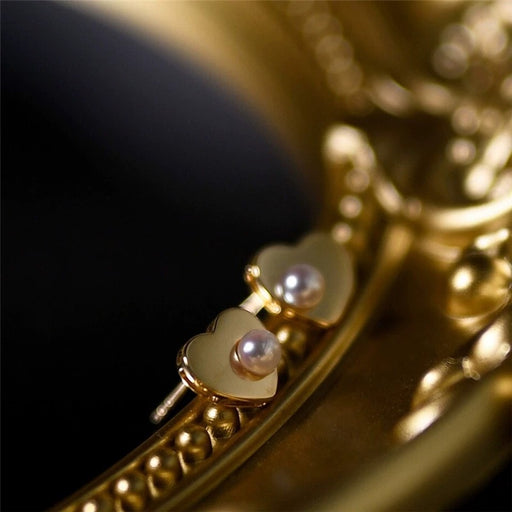 925 silver needle love mirror pearl stud earrings