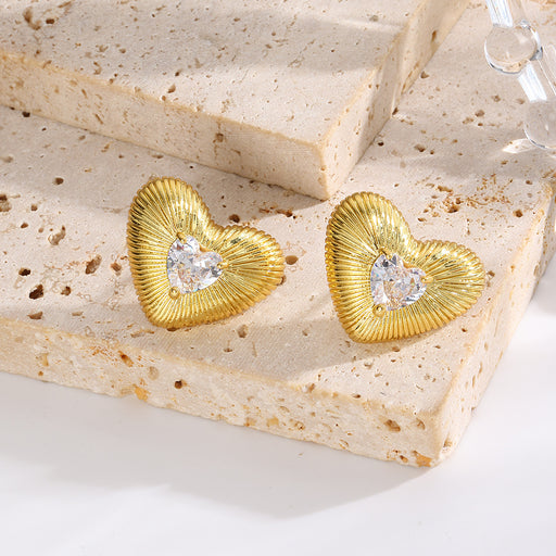 Copper micro-inlaid love zircon S925 silver needle earrings