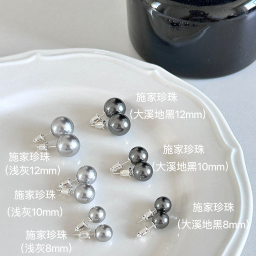 Artificial Tahitian Black Pearl Stud Earrings with Silver Posts