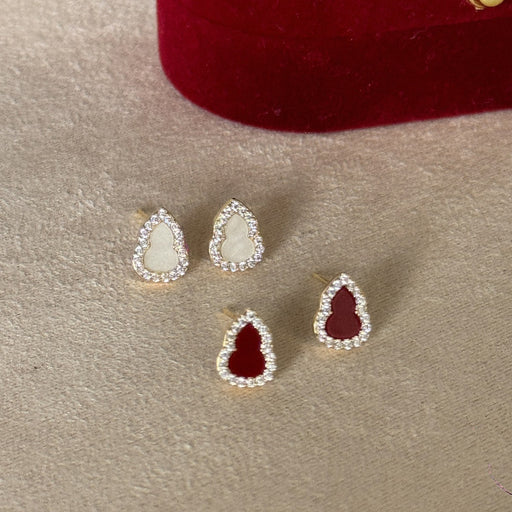 Red Agate White Mother-of-Pearl Mini Gourd Earrings