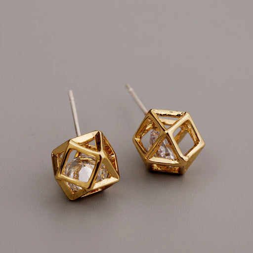 S925 silver needle minimalist square diamond stud earrings