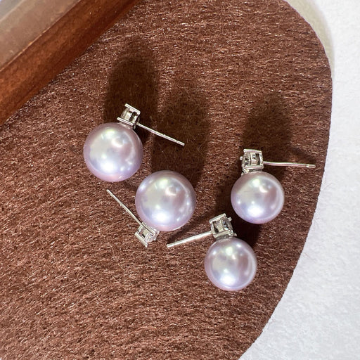 Rose Pink Purple Gentle Pearl Sterling Silver Stud Earrings