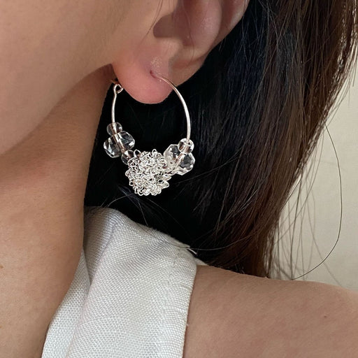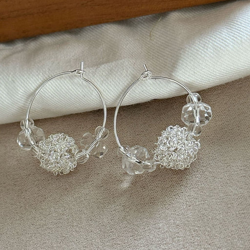 Transparent crystal steel wire ball earrings