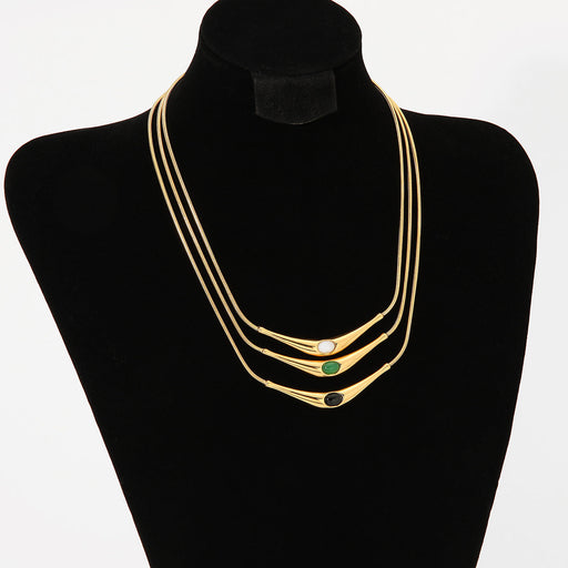 2mm round zircon blade chain necklace 18k real gold electroplated titanium steel