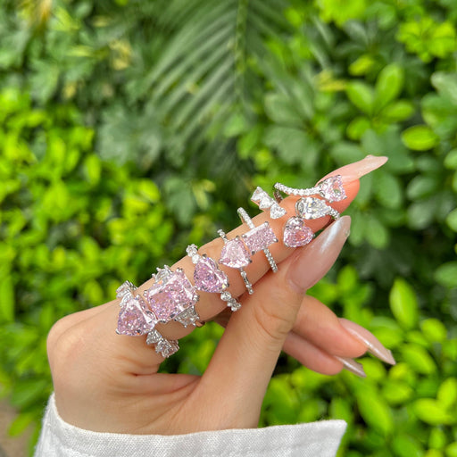 925 Sterling Silver Barbie Pink 8A Ice Flower Cut Ring
