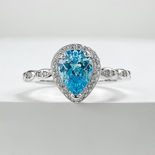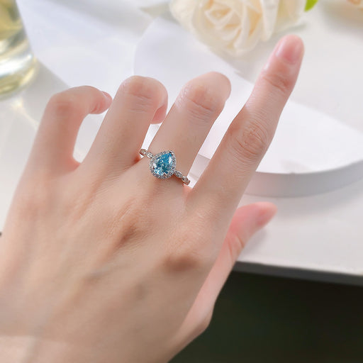 925 Silver High Carbon Diamond 6×8mm Ocean Blue Diamond Ring