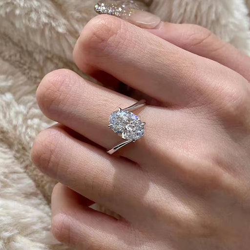S925 Sterling Silver Oval Ice Flower Cut Wedding Ring