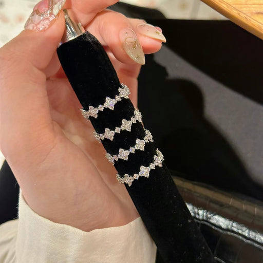 925 Silver Four-Leaf Flower Full-Diamond Ring