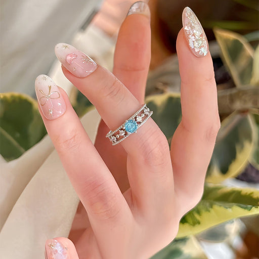 Flower Inlaid Fine Diamond Open Ring