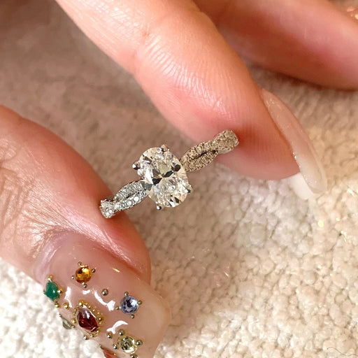 Sterling silver oval moissanite high-carbon diamond ring