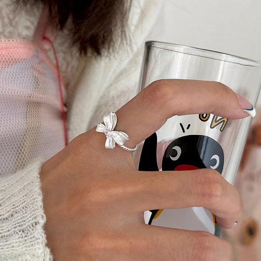 925 Silver Bow Pink Diamond Ring